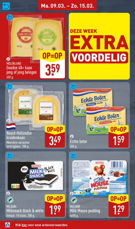 Deze tekst wordt automatisch gegenereerd, dus deze kan fouten bevatten.Ma. 09.03 - Zo. 15.03 SEL? DEZE WEEK JONG BELEGE) 48+ € ace © EXTRA OP OP (ms MOLENLAND Goudse 48+ kaas 59 jong of jong belegen En 4 Il N FENEGRIEK f si à ES Sn Noord-Hollandse OP OP OP oP kruidenkaas G Meerdere varianten 49 EN 59 verkrijgbaar. 200 g AIK nee a ml (10x) WHITE v daad) © UDDING © OP oP MI LSANI MILSANI Milksnack black & white 199 Milk Mouse pudding 129 Inhoud: 10 stuks, 280 g BER Klik hier voor onze actievoorwaarden