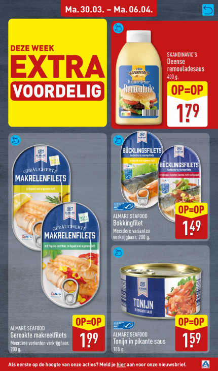 Deze tekst wordt automatisch gegenereerd, dus deze kan fouten bevatten.Ma. 30.03. - Ma. 06.04 DEZE WEEK SKANDINAVIC'S Deense ten remouladesaus EXTRA 1 SKANDINAVICS, a 400 q Origine St » m il OP OP L III 79 BUCKLINGSFILETS) |ALMARE| See Geraucherte Heingsflets BUCKLINGSFILETS ET MEL ES RAM n pikanter Tomaten-Creme mit Pusztasalatl MAKRELENFILETS BATE > 5 SI EN Vs OP oP £ ALMARE SEAFOOD el lanta toys) Bokkingfilet IA | Meerdere varianten QAT: MAKRELENFILETS VLOT EEL SPAIN SS an EE Fund A 4 _ > ALMARE IA B) GATE A 1 TONIJN G | LET La > Fr Ve OP oP ALMARE SEAFOOD Gerookte makreelfilets ALMARE SEAFOOD Meerdere varianten verkrijgbaar. Tonijn in pikante saus 99 zug 199 185 q Als eerste op de hoogte van onze acties? Meld je hier aan voor onze nieuwsbrief. D