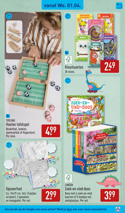 Deze tekst wordt automatisch gegenereerd, dus deze kan fouten bevatten.ed SZ > Le) if Een == | “2 | LL x de 24 ANIMALS LOT U rm > je A ® Ex ANMAS K] Sa p ©, Za Gi 2 DOI) All u IN A7 RER Ko fi, U Er N ee: Klbirkaarten 14) 4 30 stuks. 0° Kt PR © Ee LUN GROTE À Sas u ZOEK-EN- € VIND-D en DP Tevarbes Ws pe {y A TOYLINO N = Houten tafelspel a Basketbal, bowlen, N sjoelvoetbal of flipperkast. 49 Ss inbonte a Per stuk. R A El zoekwereld % 12 nf ae 5 \ eo sw LS pee) QE Lee = > WY AAS © nd e, OS LINGEN FO Gipsverfset Zoek-en-vind doos Ca. 15x19 cm. Incl. 8 potjes Doos met 6 zoek-en-vind acrylverf, 2 penselen kaarten of 5 boekjes vol en mengpalet. Per set. zoekplaatjes. Per set. _Alseersteop de hoogte van onze acties? Meldjehier aan voor onzenieuwsbrief. ZN