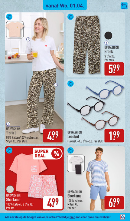 Deze tekst wordt automatisch gegenereerd, dus deze kan fouten bevatten.Sc RX Re 5 RR 40 5 Ee ese: Fa te ES a - | à AT © eN AC SR SE ae Ge! ER © B LÉ Le AS UP2FASHION es Ee sue Broek à Aa dp, ie à e= = = Kr u SS De Ne S t/m XL. fau à RE ER Per stuk. N ws AN à REN TR Ee < Sa EX Jee En En, = nn PR 1) 5 LR ND; N ws a HE FR A je À 02, Hi ke a \ ie As NOTA En vo MN Ne où © va Re Cod Br: 53 Sa UPZFASHION T-shirt . UP2FASHION 99 Leesbril 80% katoen/ 20% polyester. S t/m XL. Per stuk. Flexibel. +1.5 t/m +3.0. Per stuk. SUPER DEAL g Ku UP2FASHION UPZFASHION Shortama Shortama 100% katoen. 100% katoen. S t/m XL. 4 M t/m XL. LAS Per set.