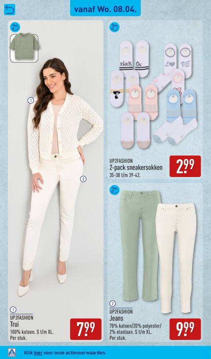 Deze tekst wordt automatisch gegenereerd, dus deze kan fouten bevatten.© 5 IS | ( = T | UP2FASHION 2-pack sneakersokken 35-38 t/m 39-42. À \ 5 f | bh. L) © UP2FASHION UP2FASHION Jeans Trui 99 78% katoen/20% polyester/ 100% katoen. S t/m XL. 7 2% elastaan. S t/m XL. Per stuk. Per stuk. A Eel