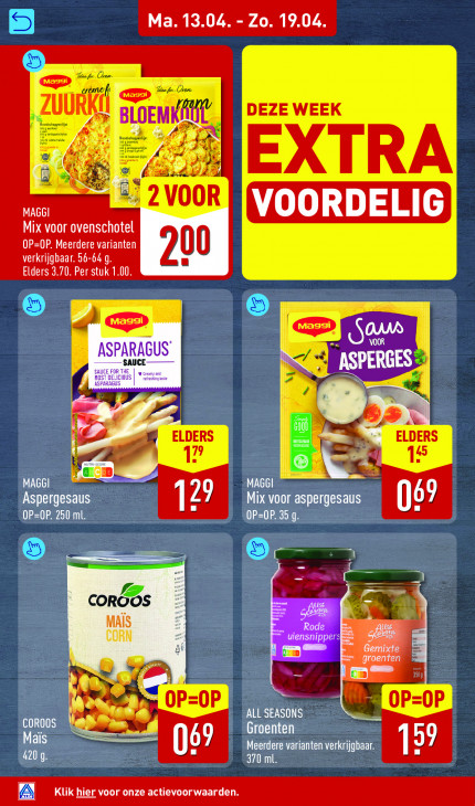 Deze tekst wordt automatisch gegenereerd, dus deze kan fouten bevatten.Ma. 13.04. - Zo. 19.04 laf Oven créme dee fer. ren {> ZUURK EMK At DEZE WEEK Lid £ EN N EXTRA MAGGI 2VOOR Mix voor ovenschotel OP=OP. Meerdere varianten 00 verkrijgbaar. 56-64 g Elders 3.70. Per stuk 1.00 El mand DK VOOR ASPARAGUS | ASPERGES MOST DELICIOUS > ke ELDERS ELDERS 15 MAGGI LA Aspergesaus Vi Mix voor aspergesaus NÉ OP=OP. 250 ml EN We Oan COROOS 7 MAIS AL uiensnippersE= TE 2 56 Cube eur. er oa CC TE OP oP a OP OP COROOS ALL SEASONS Mais Groenten 069 Meerdere varianten verkrijgbaar. 159 420g m! Klik hier voor onze actievoorwaarden