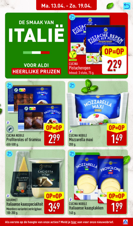 Deze tekst wordt automatisch gegenereerd, dus deze kan fouten bevatten.Ma. 13.04. - Zo. 19.04. E ur m ana EE ai Ne} COCA CHE R NET LACS DR Be „> OP OP CUCINA NN 29 Pistacherepen Inhoud: 3 stuks, 75 g. Dun \RAI fm mn ll) ee Fo j OFITERO,, A NS \e aan I Da. en nd 1 2. n= OP OP 0 P=0P 8 CUCINA NOBILE CUCINA NOBILE Profiteroles of tiramisu Mozzarella maxi 450-500 g. 200 9. E D Care) Lin AN ND CACIOTTA A+ a er 61 (0)J0/Ke7 7 4 RIN 72727720 | ET = 0P=0P + OP = OP GOURMET D CUCINA NOBILE Italiaanse kaasspecialiteit Italiaanse kaasplakken Meerdere varianten verkrijgbaar. 31° 100-200 9. 1409. 00 00
