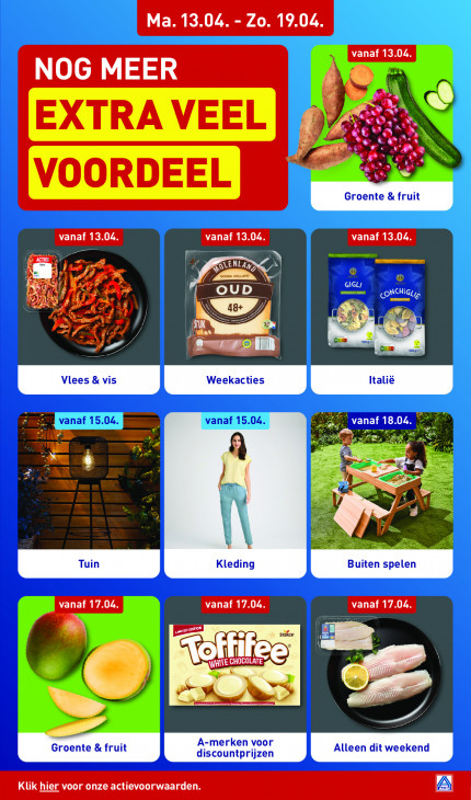 Deze tekst wordt automatisch gegenereerd, dus deze kan fouten bevatten.Ma. 13.04. - Zo. 19.04. vanaf 13.04. NOG MEER Be ARR a A LME ne ‘4: UP | vi IN 5 - vanaf 13.04. vanaf 13.04. vanaf Din _ ï Fi En ve det SED DP von cuve QE OUD TS SN Ni E: " + nl a A ar 3 2°) n Xx ( di == | vanaf 17.04. vanaf 17.04. vanaf 17.04. nn ul ka 8 tn 2 ee A Klik hier voor onze actievoorwaarden. A