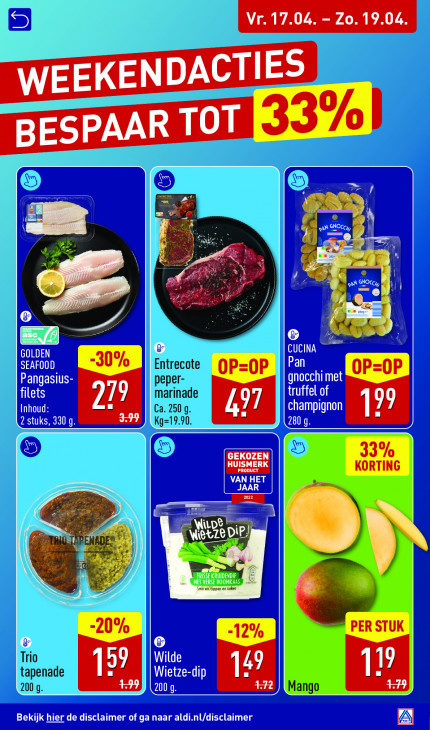 Deze tekst wordt automatisch gegenereerd, dus deze kan fouten bevatten.u UN vr CS ij : | ANT Fo Jl À EN CUCINA GOLDEN SEAFOOD Pan gnocchi met Pangasius- IGS Ik KERN; Inhoud: ne ont 41 champignon 1 | \2 stuks, 330 g. (280 9. Ig VAN Au JAAR | = MA D EN BE er SECHS MET VERSE ROOMK AA: Smoren. dippen en oker Wilde 0 | My u | | War) | 5 00 EE (CE Bekijk hier de disclaimer of ga naar aldi.nl/disclaimer