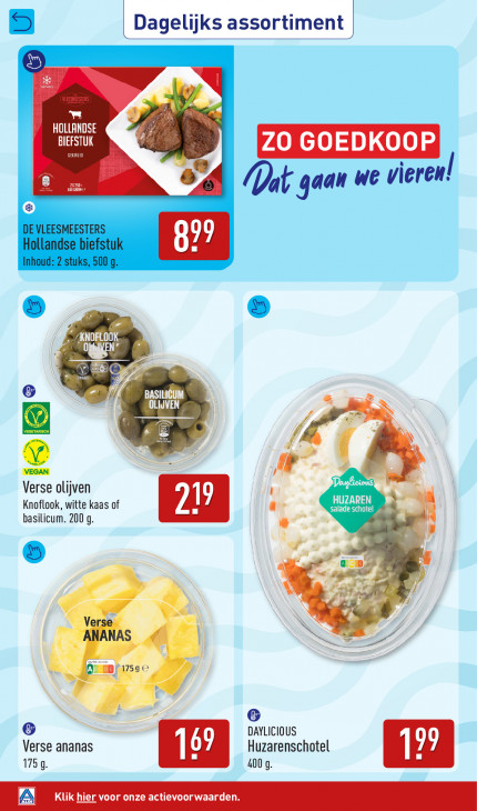 Deze tekst wordt automatisch gegenereerd, dus deze kan fouten bevatten.9 | Dagelijks assortiment | + ] el HOLLANDSE BIEFSTUK ZO GOEDKOOP BT 8 EC Yat gaan we vieren: © 4 ACER LE IKE 2 nr a J Fi / N N VEGAN Ar Verse olijven GAP Knoflook, witte kaas of salade schotel => m basilicum. 200 g. 4 5 A S a Verse ANANAS c N EBi1759€ G G DAYLICIOUS Verse ananas Huzarenschotel 1759. 400 9. A