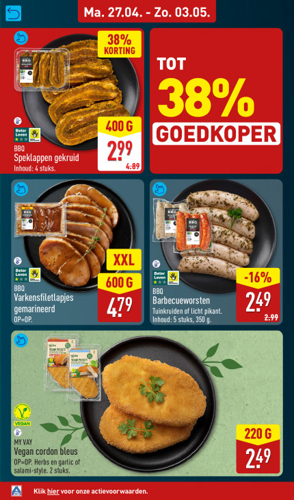 Deze tekst wordt automatisch gegenereerd, dus deze kan fouten bevatten.Ma. 27.04. - Zo. 03.05. AE. Ë TOT = & 1 nnn. EN Al Leven XX GOEDKOPER r m s Speklappen gekruid Inhoud: 4 stuks. 27 a Li 114 a = Ê & ih SE | | 3 # LL Leven Le ms À 79 29 innn POCKEI En Cee ar << 44 4 MY VAY Vegan cordon bleus OP=OP. Herbs en garlic of ge ki salami-style. 2 stuks. A Klik hier voor onze actievoorwaarden.