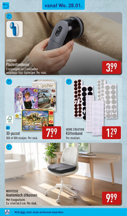 Deze tekst wordt automatisch gegenereerd, dus deze kan fouten bevatten.Fr ) uizento; 3 snijlengtes SEHEN 399 instelbaar. Incl. batterijen. Per stuk. ER I (a il | Ii 3 2 | Be 0% 2 & af / 5 Fl Im ‘4 A waneer, FSC À HOME CREATION 77 Klittenband SS 3D-puzzel U = [ > 300 of 500 stukjes. Per stuk. Per stuk/set. ® Ag ; ST NOVITESSE Anatomisch zitkussen » 7 | Met traagschuim. mn 7 LS Ca. 41x41x6.5 cm. 2 stuk. {A Küchiervooronzeactievoorwaarden.