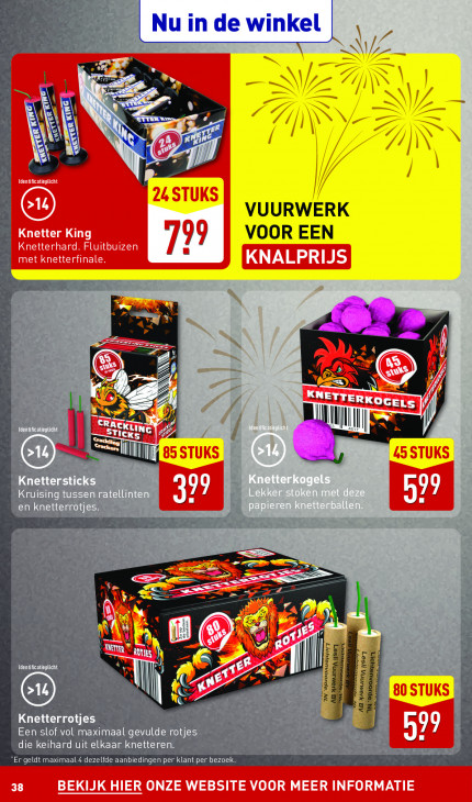 Deze tekst wordt automatisch gegenereerd, dus deze kan fouten bevatten.Nu in de winkel \ 2 N / ge > 14 à 4 \ A Q 3 Ô (à N CL) AS 5 à | > NS | | VUURWERK % 77 VOOR EEN ] 24 Pd | 4 ) 44 © ER > AL RAA: FO GELS 1 | Identficatieplicht IN] Na A x =) ut Knettersticks KC Ü Kruising tussen ratellinten erh, en knetterrotjes | wu I > à 1 wi or AS Ke AA € Fr » = ) ra À a ea | PE a IN 7 Sr fe ET Identificatieplicht || INT 0 a | à || (ll III CAS PA U Knetterrotjes | Û Ü Een slof vol maximaal gevulde rotjes à die keihard uit elkaar knetteren Er geldt maximaal 4 dezelfde aanbiedingen per klant per bezoek.