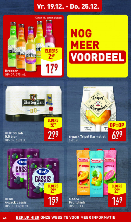 Deze tekst wordt automatisch gegenereerd, dus deze kan fouten bevatten.Vr. 19.12. - Do. 25.12. Geen 18, geen alcohol Ee En Di jur Ir NOG tEE MEER JR CNT on ZER 25 CE VOORDEEL TT 17 OP=OP. 275 ml. L 6 2 we, Hertog Jan 16 ER] 79 4 ALCOHOLVRIT BIER ° me“ € GX 33CL © Z „OP OP Verfijnd, rt off HERTOG JAN 0.0 bier rk] 6-pack Tripel Karmeliet OP=OP. 6x33 cl. 6x25 cl. RT 1 26 Et EK ® LS Hex Gaz) maa) Eil Er s Et ax LS El LA Mango „ropical THE ORIG Fi » © | CASSIS, ER kad) RECYCLEME ® 'M 100%o RECYCLABIE 9 BECOME À GREEN Ho) zer” ELDERS Fruit drink ELDERS 27 Fruit drink 2? CEE HERO Se Fruitdrink 4-pack cassis OP=OP. 4x250 ml. 17? OP=OP. 11. 1? 46 BEKIJK HIER ONZE WEBSITE VOOR MEER INFORMATIE