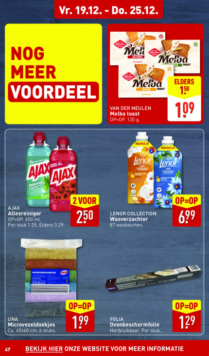 Deze tekst wordt automatisch gegenereerd, dus deze kan fouten bevatten.Vr. 19.12. - Do. 25.12. Zn Mi NOG rs MR. TB Tonsr MEER ELDERS Me 12 VOORDEEL VAN DER MEULEN Melba toast 19 OP=OP. 120 g. MEGAPACK 187 MEGAPACK 287 (© s à eno A Fa ld 24H EEA Nn Gen hx fête fl “3 1 à POP OP AJAX = LENOR COLLECTION Allesreiniger OP=OP. 650 ml. Wasverzachter vh) Per stuk 1.25. Elders 3.29. El 87 wasbeurten. en Ë Ed SXase ES OP=OP UNA FOLIA Microvezeldoekjes Ovenbeschermfolie Ca. 40x40 cm. 6 stuks. 127 Herbruikbaar. Per stuk. 12 > 47 BEKIJK HIER ONZE WEBSITE VOOR MEER INFORMATIE