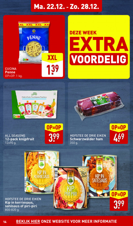 Deze tekst wordt automatisch gegenereerd, dus deze kan fouten bevatten.Ma. 22.12. - Zo. 28.12 se —— == == | € DEZE WEEK AUS La u EXTRA AV XXL CUCINA Penne 39 OP=OP. 1 kg SE > erf Pie « We 2 OP oP ALL SEASONS HOFSTEE DE DRIE EIKEN PSE TITLES LE Schwarzwälder ham 12x90 g KEN 169 DRIE EIKEN ; 7e BN DRIE IKEN al EN KIP IN 7 | 5 SAUNA SE" B al (l N Ve pl pu OP=0P HOFSTEE DE DRIE EIKEN LE (il Kip in kerriesaus, satésaus of piri-piri 399 800-820 g 14 BEKIJK HIER ONZE WEBSITE VOOR MEER INFORMATIE