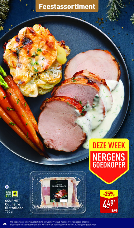 Deze tekst wordt automatisch gegenereerd, dus deze kan fouten bevatten.Nn D #4 N S \ N Shai 4 -— AAN EN N N a = Ko LE Ph, x ne EN 3% € # RE Pr Á PAN | a yo Pi 7 Re RE, à N 8 E ut P Ke | D Tv Ve SS à DEZE WEEK a NERGENS GOEDKOPER Dates RRT Ps) CULINAIRE FILETROLLADE 7 Ee Related Leven = — SR CG GOURMET | Culinaire 49 filetrollade | Sans 7509. 26 “Op basis van een prijsvergelijking in week 49-2025 met een vergelijbaar product bij de landelijke supermarkten. Kijk voor de voorwaarden op aldi.nl/nergensgoedkoper
