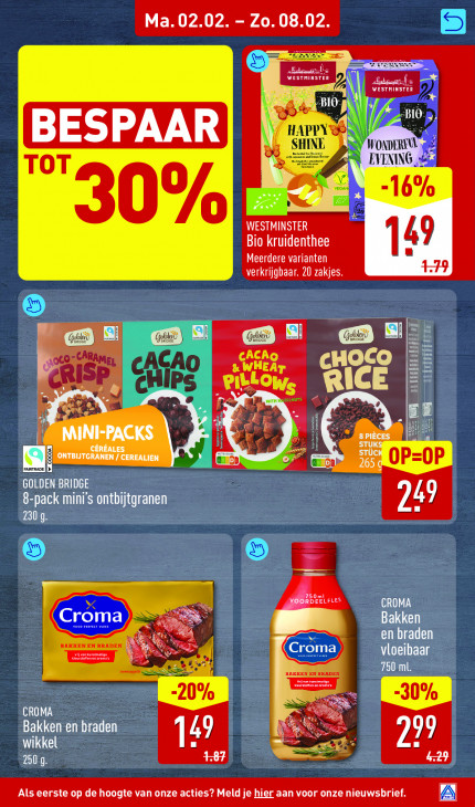Deze tekst wordt automatisch gegenereerd, dus deze kan fouten bevatten.Ma. 02.02. - Zo. 08.02. SE WESTM| Ht = [u $ DES À 1 ESP HAPPY AN gy WONDERE A A EVENING + N Ni 1 6% TOT 0% WESTMINSTER 49 Bio kruidenthee Meerdere varianten verkrijgbaar. 20 zakjes. ie 2 Golden) [AE ÿ ©! Gp) Oe BACH C HOCO & WHEAT AU IT TELLE Hi * A EZ 5 ENTER AN a m ZELNUTS lee — 5 El s = > “ Te = za 8 = = STUI ASS PIS OP OP CMS 8-pack mini's ontbijtgranen 49 230 g. Es VW LS CROMA Croma re Bakken en braden BAKK] RAD! Croma vloeibaar a BARKEN EN BRADEI 750 ml. -2 0% LU Bakken en braden 49 LUE ii es 277 Als eerste op de hoogte van onze acties? Meld je hier aan voor onze nieuwsbrief.
