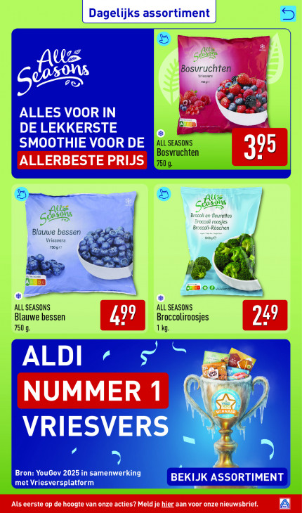 Deze tekst wordt automatisch gegenereerd, dus deze kan fouten bevatten.| Dagelijks assortiment u ss GE Bosuruchten riesvers css > Tj + Ka 4 Dg ALLES VOOR IN DE LEKKERSTE * EEE EEE, SMOOTHIE VOOR DE ALL SEASONS Bosvruchten 395 Dem Us ES A a Brocoli en fleurettes Gh Brocooli roosjes Blauwe bessen \ se Vriesvers RN MTS “woe 750ge ni we ER a u Be — 05 Se se ALL SEASONS ALL SEASONS Blauwe bessen Ak, Broccoliroosjes L nd 7 7509. 1 kg ALDI S Se U Bron: YouGov 2025 in samenwerking met Vriesversplatform BEKIJK ASSORT INENT