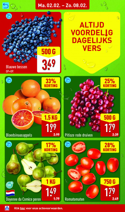 Deze tekst wordt automatisch gegenereerd, dus deze kan fouten bevatten.Ma.02.02. - Zo. 08.02. TS Ee ie Kae) € se,’ Kd 7 É et Deed ahd ed Blauwe bessen OP=OP. SA © IS PR ,) NE Ke Fr] is | # LE] 2 99 ER M CAL à 179 Bloedsinaasappels Pitloze rode druiven \ AEK | > à = fl 149 79 =] oyenne du Pen peren FA Romatomaten A Klik hier voor onze actievoorwaarden.
