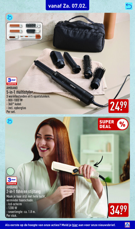 Deze tekst wordt automatisch gegenereerd, dus deze kan fouten bevatten.dd ina — ern Zyaar hi AMBIANO © 5-in-1 multistyler 3 warmtestanden en 5 opzetstukken. - 800-1000 W - 360° kabel C - incl. opbergtas L 4 D 7 Per set. LES D I) £ À Ir | f Zyaar N) AMBIAN 2-in-1 föh Maak je haar stijl met he verminder haarschade. - led-scherm - 1200 W re Kae = =. - snoerlengte: ca. 1.8 m. Le LL Per stuk. Als eerste op de hoogte van onze acti 2 Meld je hier aan voor onze nieuws