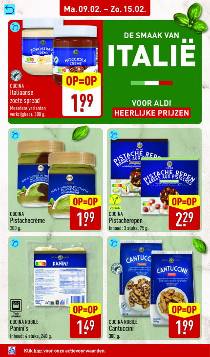 Deze tekst wordt automatisch gegenereerd, dus deze kan fouten bevatten.(7/4 En (12 u DE SMAAK VAN en 1 me: | LA u) Ne) NOCCIOLA CREME ITALIE WEN AE Ü 7 VOOR ALDI 1 N me CH AUX Bm oP Ta CH IS ord NT Mana PTS 5: LÉ CUCINA > RS NEA B se > an LE A if ges M B RCA ad 7 ISTAZIENCRE ar Zul VEGAN ne CUCINA CUCINA Pistachecrème 77 Pistacherepen Ik 7 2009. Inhoud: 3 stuks, 75 9. EEE 2) JAN RIN au ce © au" ij a BA: #4 PR nn er JM ann el ss CUCINA NOBILE CUCINA NOBILE Panini’s Cantuccini 7 Inhoud: 4 stuks, 240 g. 149 300 g. 1 A