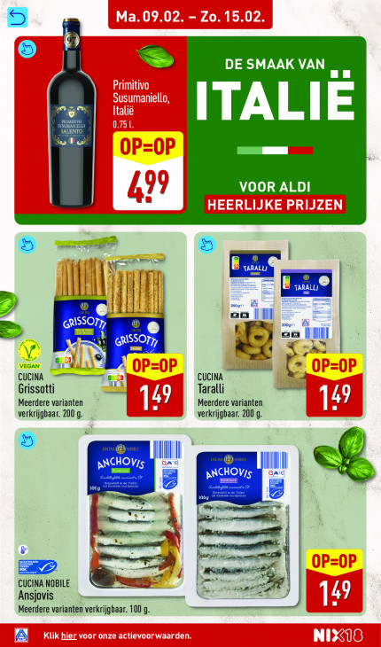 Deze tekst wordt automatisch gegenereerd, dus deze kan fouten bevatten.R € DE SMAAK VAN ITALIE JD 177 VOOR ALDI "Tu #| er ee un NES | = ur ll | | a (1) Î an IS GRISSOT, // le) pf es (NT ul) Y a VEGAN u LL CUCINA Grissotti Ai CUCINA Taralli E Meerdere varianten Meerdere varianten verkrijgbaar. 200 g "arr verkrijgbaar. 200 g 149 # 7 IN NCH III ES NIS CL 2 Vis | nee | am | cr pes TR FES Be TEL vel CUCINA NOBILE & he Ansjovis ee Re x Meerdere varianten verkrijgbaar. 100 g. 149 A
