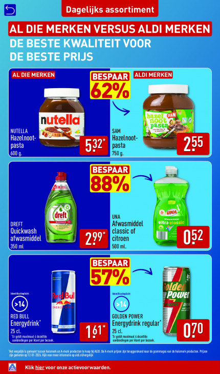 Deze tekst wordt automatisch gegenereerd, dus deze kan fouten bevatten.Dagelijks assortiment 12% hazel, Clie noot IK SAM nteis | nun Hazelnoot- pasta st 7509. ER a Vans) dreft) Afwasmiddel classic of I u 52 citroen 500 ml. BESPAAR E | Powel ERGEN vn | GOLDEN POWER Energydrink regular’ SES NN NN, “Er geldt maximaal 4 dezelfde 25 cl. 070 aanbiedingen per klant per bezoek.