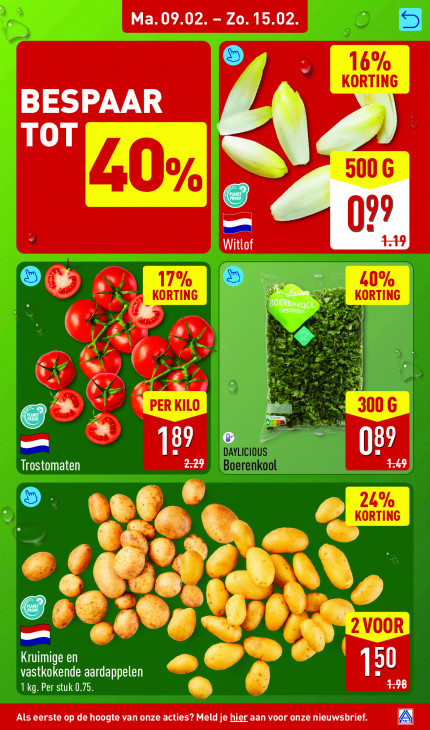 Deze tekst wordt automatisch gegenereerd, dus deze kan fouten bevatten.Ma.09.02. - Zo. 15.02. BESPAAR TOT © L WIN 07 N ri + == © = De 2 5 BO Bt vi WE ® ep 2 KL N à | ? % 89 Ee 89 di ee 0 Trosto maten ps æœæ AP A a « MN IN {6 Es + F. Fi 3 #, r Ki kl PA Pq 4 > Kruimige en I vastkokende aardappelen 1 kg. Per stuk 0.75. 1 Als eerste op de hoogte van onze acties? Meld je hier aan voor onze nieuwsbrief. A