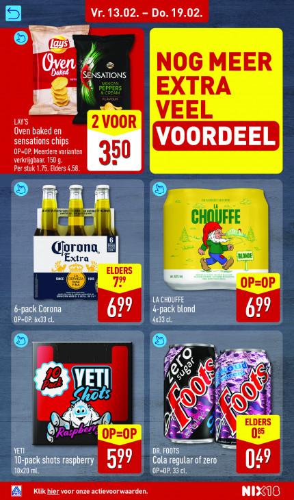 Deze tekst wordt automatisch gegenereerd, dus deze kan fouten bevatten.Vr. 13.02. - Do. 19.02 = = NOG MEER NEU IR EXICAN PEPPERS EXTRA LAY'S Á VEEL Oven baked en 2 VOOR sensations chips VOORDEEL OP=OP. Meerdere varianten 50 verkrijgbaar. 150 g Per stuk 1.75. Elders 4.58 LA | nel FFE a; OTONd, xtra S ONDE ELDERS 7 oP oP an en, amen Ne UE 6-pack Corona RT lente etre LE OP=0P. 6x33 cl 433 cl. CRE A (| ) Gn \ T | IN | 3 ELDERS va as 6 PEU 08 Dre In (AIEN re ak QU en 599 OP=OP. 33 cl. Cola regular CC 049 LA) Klik hier voor onze actievoorwaarden D LS