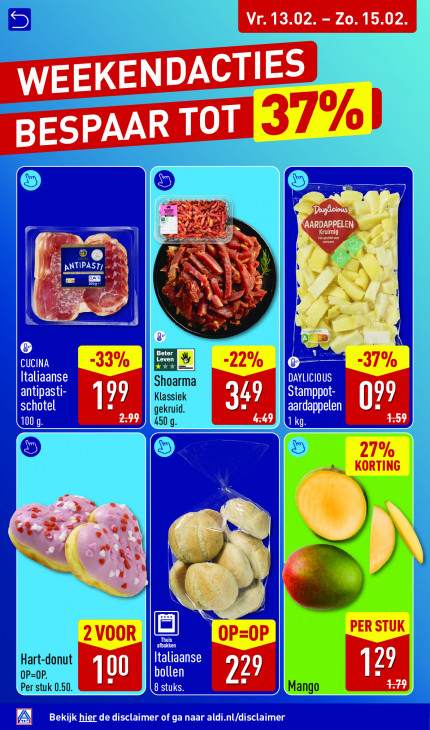 Deze tekst wordt automatisch gegenereerd, dus deze kan fouten bevatten.Vr. 13.02. - Zo. 15.02. BESPAAR TOT ] GTS CLAIR > AR N \ Beter Leven X k ES w Shoarma 99 Klassiek A] gekruid. I 450 9. = 3 Ee «4 $ à >. N Hart-donut fh, OP=OP. Per stuk 0.50.