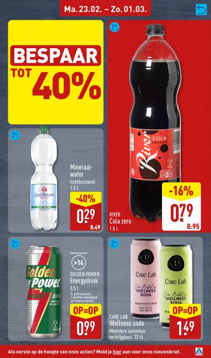 Deze tekst wordt automatisch gegenereerd, dus deze kan fouten bevatten.| Ma. 23.02. - Zo. 01.03. [BESPAAR Dez | A | = =} COLA 4 E Se a El nues | N zn Cola zero | 07 029. 15L Ls Care Lab Cal UL NE: El SODA met un WE) [7:28 jon Drink Reg = LS 147 BEER Als eerste op de hoogte van onze acties? Meld je hier aan voor onze nieuwsbrief.