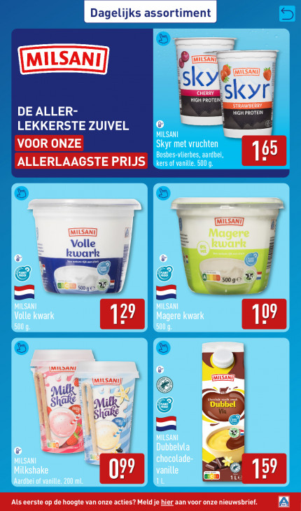 Deze tekst wordt automatisch gegenereerd, dus deze kan fouten bevatten.| Dagelijks assortiment | U D — J an ‚< EE | ì CHERRY hät I HIGH PROTEI DE ALLER- HIGH PROTEIN RAWBERRY LEKKERSTE ZUIVEL VOOR ONZE ALLERLAAGSTE PRIJS es Magere lle ark ek kwark Q Bsooge ® ED sooge & 2 un. \MIEBANG, \MILSANIJ| Aa Ke l A © gn Et e L x 3 | x > N; f 4 N 1Le 99 209 Als eerste op de hoogte van onze acties? Meld je hier aan voor onze nieuwsbrief. A)