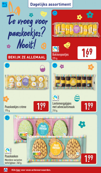 Deze tekst wordt automatisch gegenereerd, dus deze kan fouten bevatten.9 Dagelijks assortiment | y © Te vroeg voor A 7 ND POOTIES Kurz ug be | IN paaskoekjes? (bai Si FAIRTRADE Bokkenpootjes En 9 4 ) PED », vug ves ir © el Liu 41 ALOM a’ — af Lentemergpijpjes met advocaatsmaak 1759 Paaskoekjes crême 2109 GE 7. NN EC ® are ps REN Si FAIRTRADE Paaskoeken ig JAUA ij Meerdere varianten en Le ww AN verkrijgbaar. 240 g A