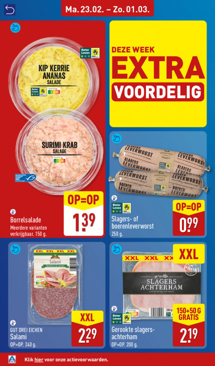 Deze tekst wordt automatisch gegenereerd, dus deze kan fouten bevatten.Ma. 23.02. - Zo. 01.03 LOS DEZE WEEK Les KIP KERRIE ANANAS EXTRA SALADE ax Cp | SURIMI KRAB ERS IN I= R (JP CB Laor, ERW OR Ee Sly 022 LEVER y le] OP OP Bet Leve: oP hellaas Borrelsalade Slagers- of Meerdere varianten 39 boerenleverworst 99 verkrijgbaar. 150 g lg) XXL —. L 22 XXL FRE SLAGERS ACHTERHAM LUI 150+50 G SE XA DS Bete: er] GUT Ne EICHEN Gerookte slagers alami 29 achterham N [| 19 N OP-OP. 200 9 Klik hier voor onze actievoorwaarden